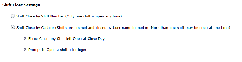 Shift by Cashier – Select this option if each employee is responsible for his/her own drawer.